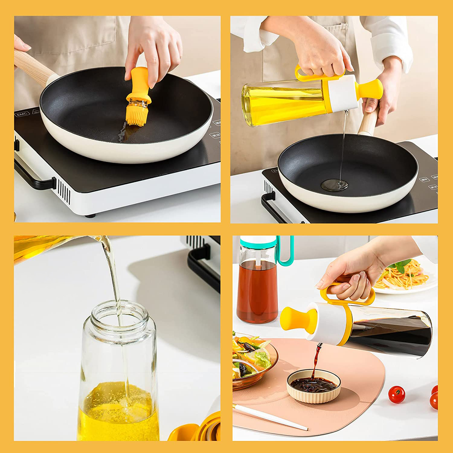 ✅ Двојна функционалност - 2-во-1 дозерот со четка ти овозможува лесно точење на масло и во исто време обезбедува практичен начин за нанесување или маринирање на храната. Со само еден производ, можеш да извршуваш повеќе задачи во кујната.