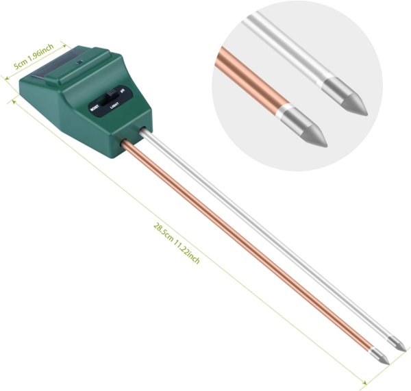 3 Во 1 тестерот за почва обезбедува сеопфатно решение за грижата за твоите растенија. Овој иновативен уред овозможува прецизно мерење на три клучни фактори за успешен развој на растенијата: влага во почвата, pH вредност и сончева светлина.