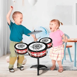 Нашиот 4-делен комплет тапани за деца е совршен вовед во светот на музиката, прилагоден за малите тапанари кои сакаат да го истражуваат ритамот и да се забавуваат во исто време.