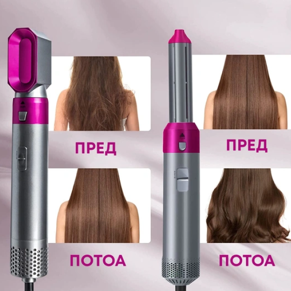 5-во-1 Сет: Наставки за сушење, исправување и автоматско виткање.