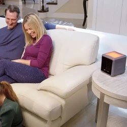 Овој мини електричен грејач работи на принципот на каролифер. Од едната страна вовлекува ладен воздух, а од друга го исфрла топол. Може да загрее просторија од 10 квадратни метри. Многу е интересно и тоа што мини грејачот има лед осветлување. Може да се користи и како светилка. Бојата на светлината ја избираш сам.