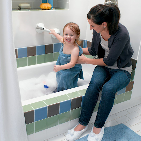 Стави ја рачката во када, туш или до тоалетот. Тоа ќе го олесни и ќе обезбеди безбедно користење на бањата и тушот за децата, како и за постарите лица.