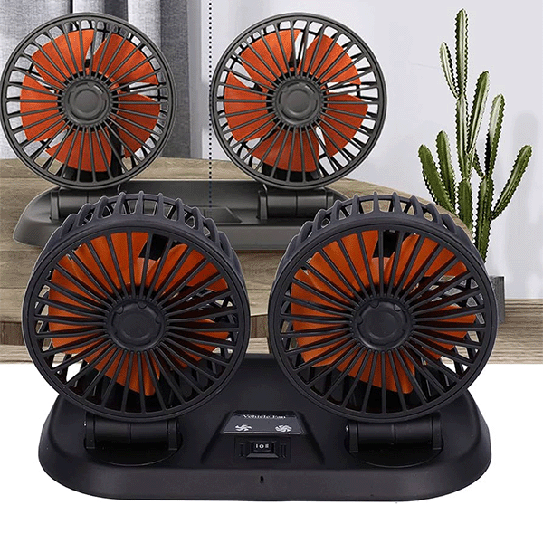 Се приклучува во 24V приклучок за запалка, има 2 брзини и ротирачка глава за насочено ладење.