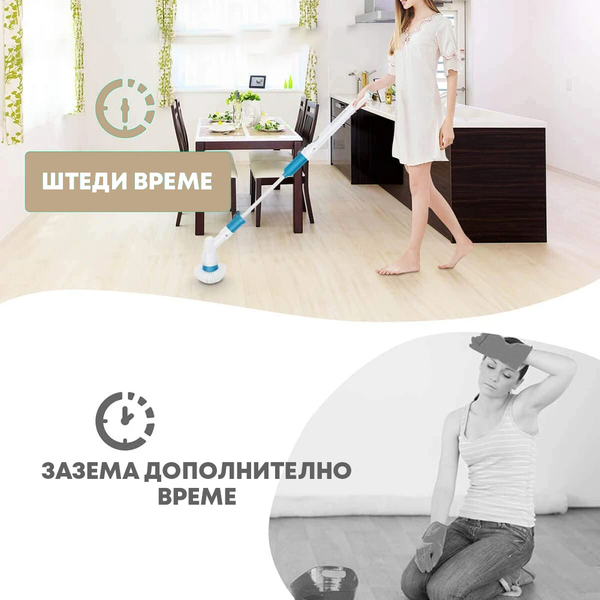 Уморнa си од макотрпното чистење и стругање на закоравените дамки? Исчисти ја целата куќа со оваа ротирачка четка со голема моќност. Со различни екстензии, ќе можеш да исчистиш големи површини и тешко достапни агли и да се ослободиш дури и од најтврдоглавата нечистотија!