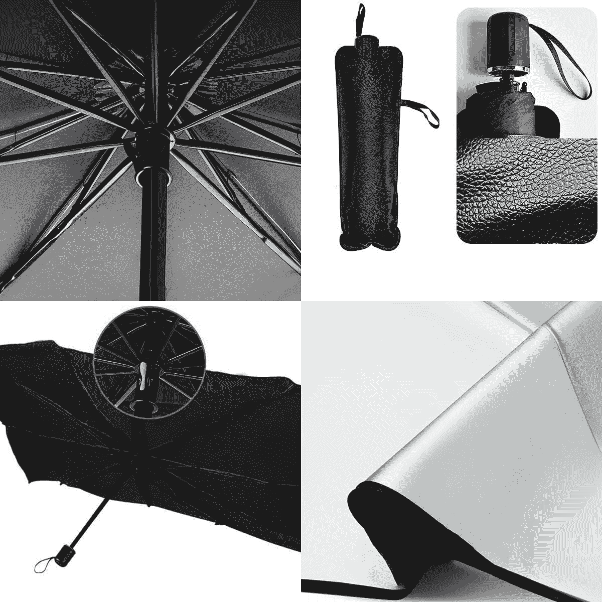✅ Ефикасна заштита од сончевите зраци - Големиот чадор за шофершајбната на автомобилот обезбедува силна заштита од штетните сончеви зраци, спречувајќи прегревање и оштетување на внатрешноста на возилото.