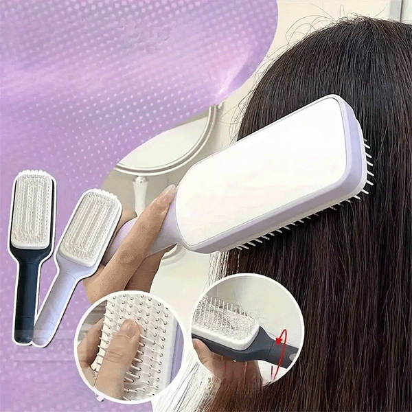 Со CleanComb, заборавете на нечисти четки и губење време! Само со еден клик на копчето, специјалниот механизам ги турка сите влакна и нечистотии надвор од четката. Меките влакна со заоблени врвови се нежни кон скалпот, обезбедувајќи удобно чешлање и пријатна масажа. Ергономскиот дизајн гарантира лесно држење, а неговата ефикасност го прави совршен за секој дом.