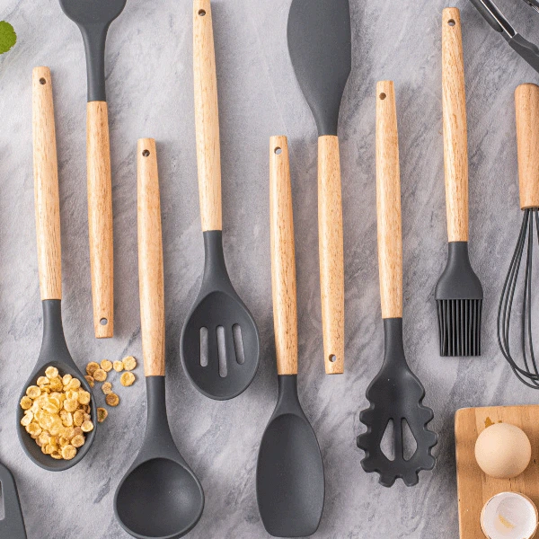 Материјал: Силикон за храна, со дрвени/бамбусови или метални рачки