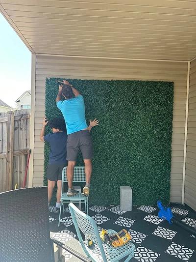 Панелот е изработен од висококвалитетен пластичен материјал кој е долготраен и отпорен на надворешни услови. Без оглед на сончевите зраци, дождот или ветровите, овој панел ќе ја задржи својата свежа зелена боја и текстура. Нема да избледи или да се оштети со текот на времето, што го прави идеален за долгорочна употреба во твојата градина, тераса или дом.