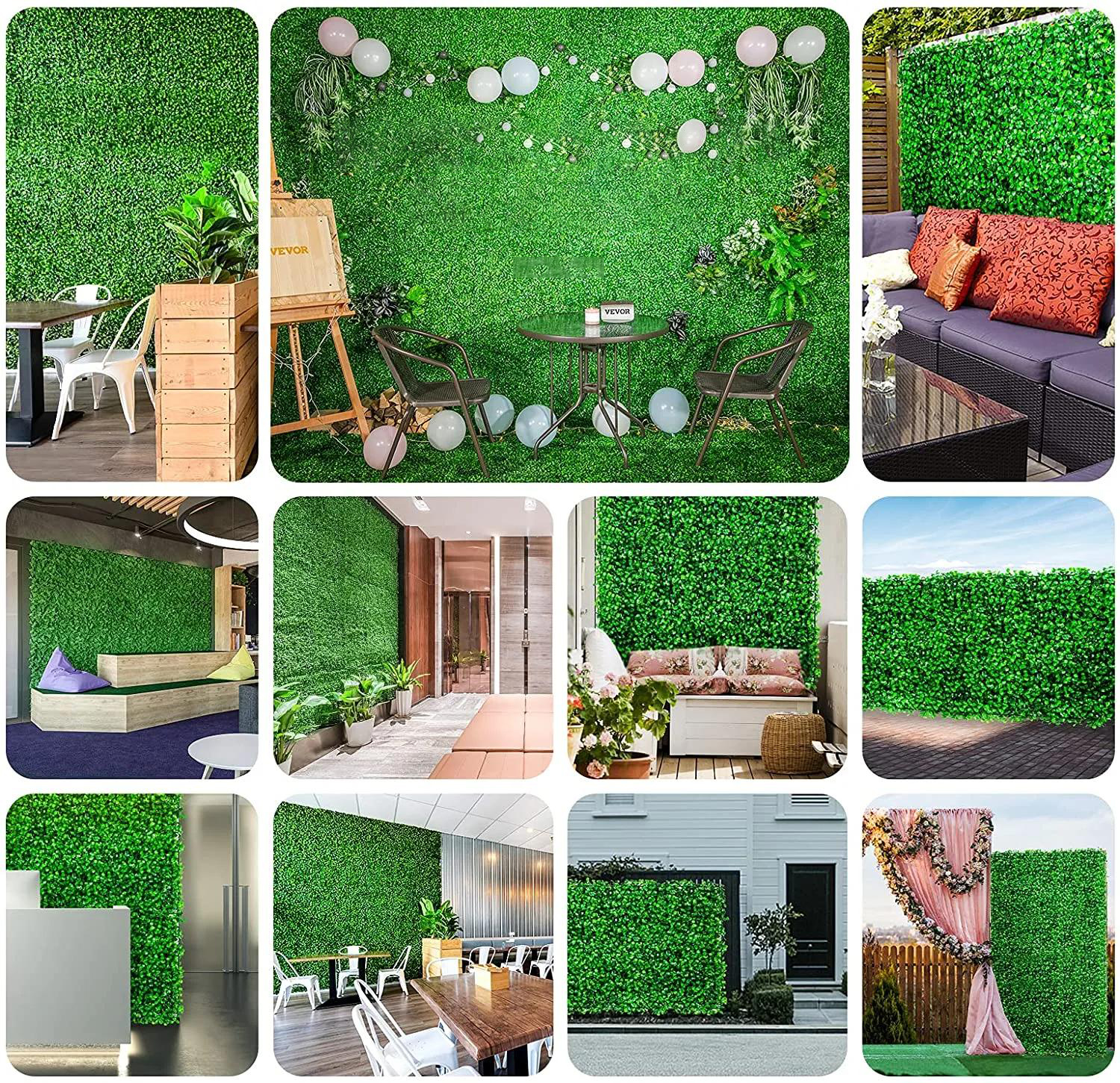 Вештачката трева на ѕидовите може да додаде допир на природа и зеленило во внатрешноста на просторите како ресторани, продавници или канцеларии.