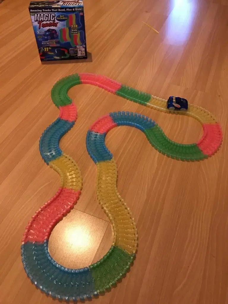 Додека автомобилот поминува, ЛЕД светилките ја осветлуваат патеката што дава дополнителна магија на целата игра. Оваа детска играчка ти нуди часови и часови забава во комбинација на бои и форми. Можностите се неограничени, и секоја наредна патека може да биде различна од претходната.