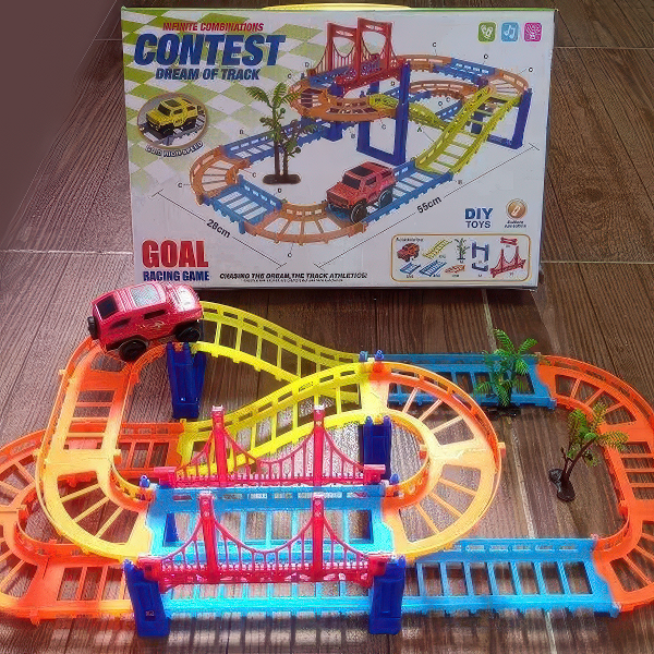 Оваа комбинација од пластична тркачка патека со автомобилче им дава на децата неограничени можности да создадат различни патеки и возбудливи трки. Дизајнирана за сите малечки кои сакаат предизвик, оваа играчка - патека им овозможува на децата да го истражат својот креативен потенцијал и да развијат вештини додека се забавуваат.