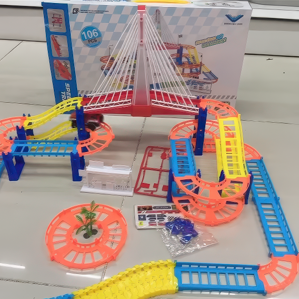 Комплетот вклучува се што е потребно за да се изгради тркачка империја, со делови што лесно се преклопуваат што овозможуваат брзо поставување и промени во дизајнот на патеката. Бескрајни комбинации и креативност, сетот содржи 31 парче кои можат да се комбинираат на различни начини, давајќи им на децата бескрајни можности да создадат уникатни тркачки патеки.