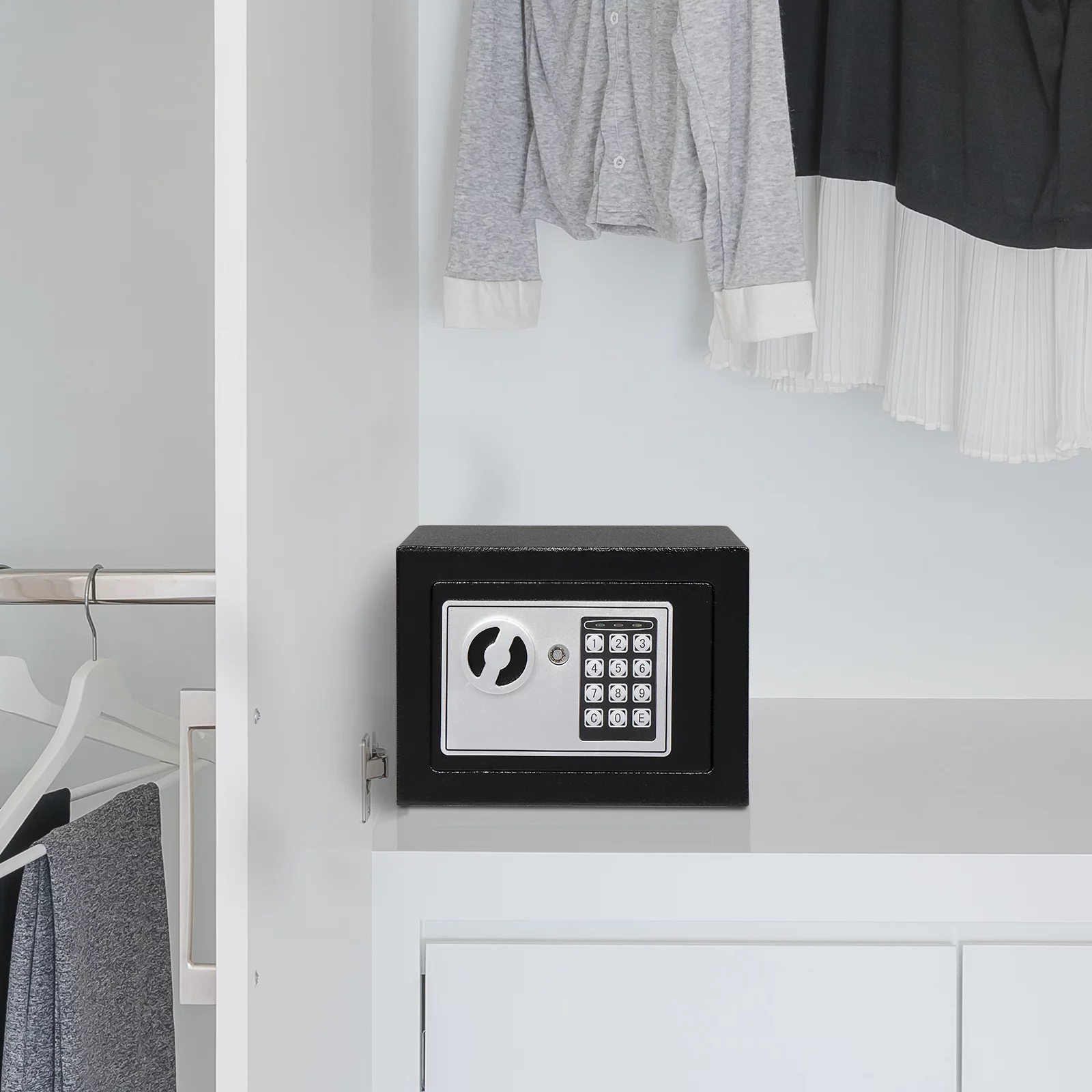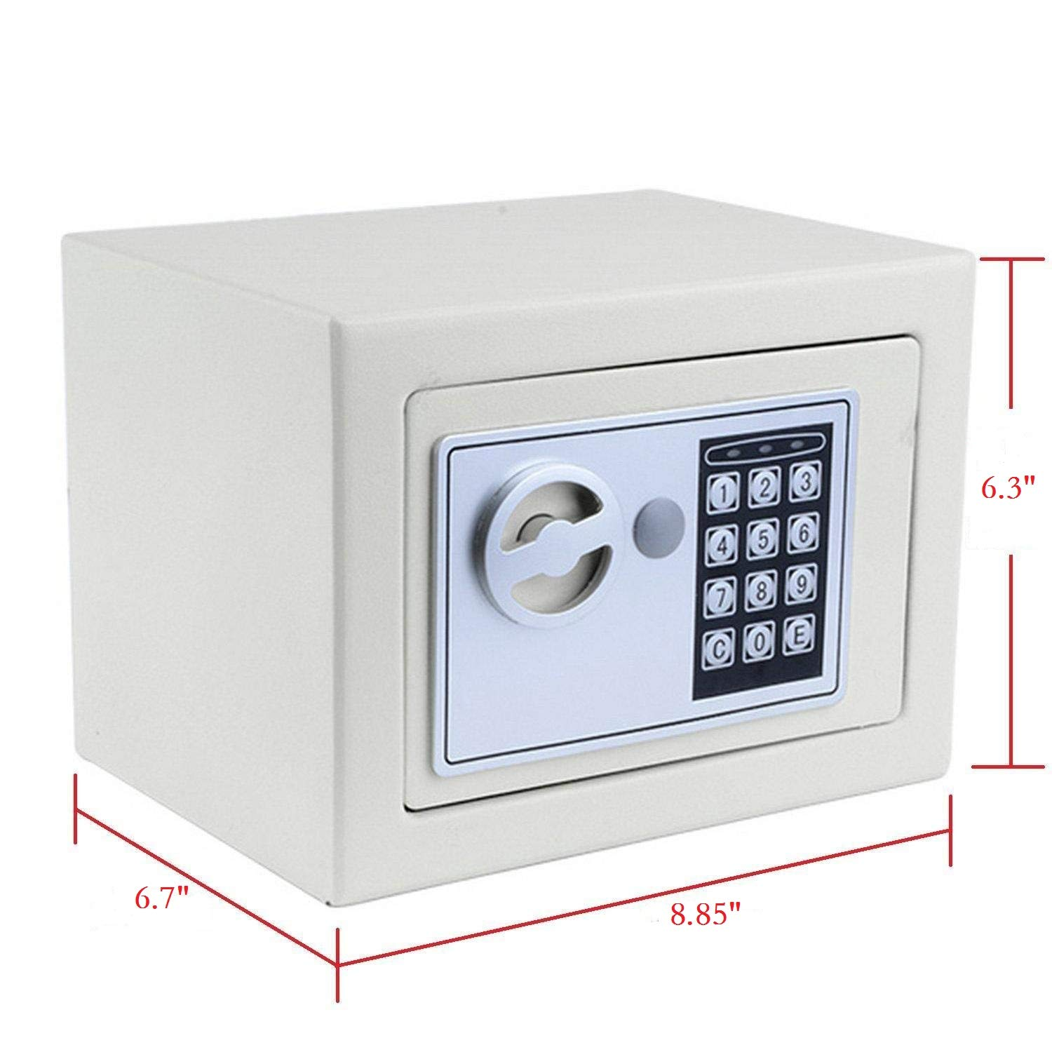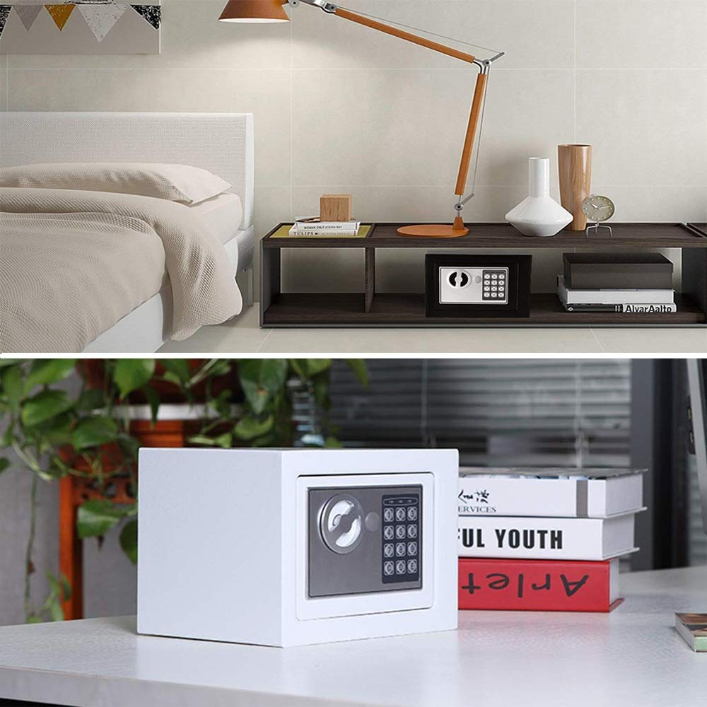 Безбедно чувај накит, пари и повеќе со нашиот дигитален челичен безбедносен сеф. Овој сеф се одликува со цврста челична конструкција, програмабилна дигитална брава, два рачни клучеви за преклопување. Заштити ги твоите највредни работи во случај на катастрофа, кражба или инвазија на твојот дом или канцеларија. Електронскиот дигитален сеф има претходно издупчени дупки за монтирање и го вклучува хардверот потребен за негово монтирање на подот или ѕидот за максимална заштита.