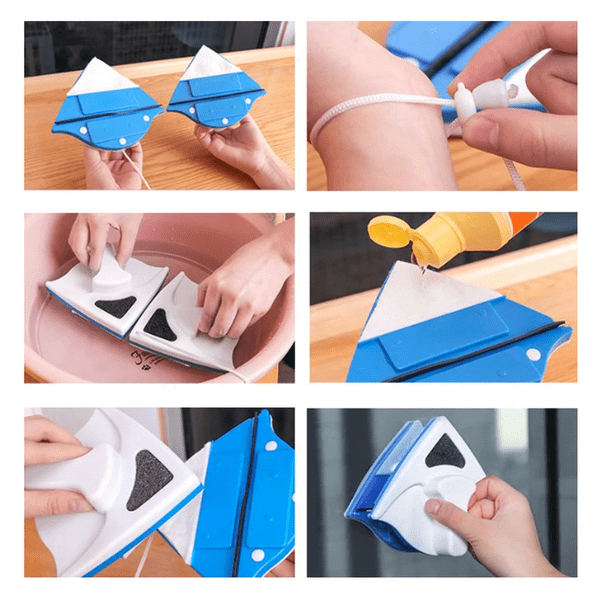 Овој чистач е идеален за употреба на височини бидејќи ви овозможува да ги чистите прозорците однадвор без да излегувате надвор или да се качувате по скала. Силен магнет цврсто ги држи двата дела на место, обезбедувајќи максимална безбедност при чистењето.