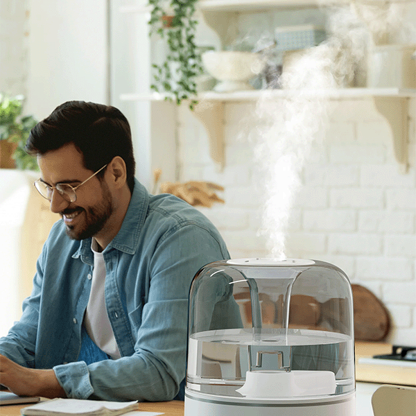 Мини хумидиферот создава фин, ладен млаз што ја ублажува сувоста на кожата, гласните патишта и алергии – идеален за секој ден.