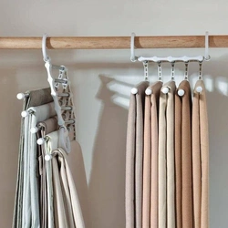 Овој производ е повеќенаменски и корисен не само за панталони, туку и за здолништа, шалови, вратоврски и други парчиња облека. Секој клип има доволна ширина за да собере дури и широки панталони, додека компактната големина на држачот е совршена за различни големини на плакарот.