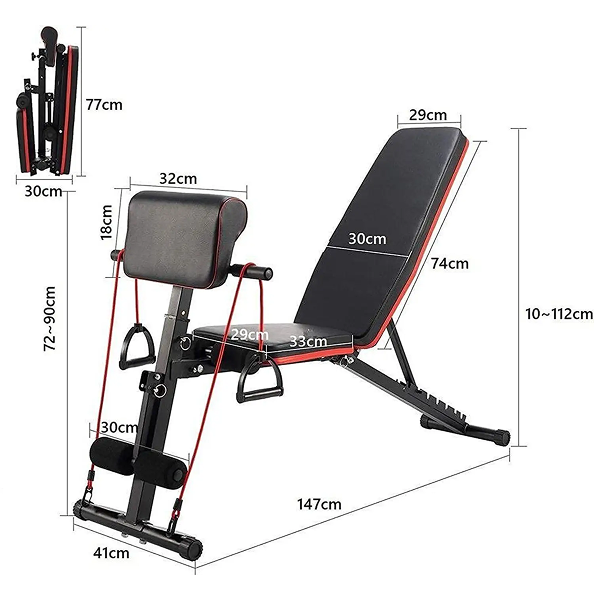 💪 Тип – Мултифункционална подеслива клупа за вежбање со ластици.