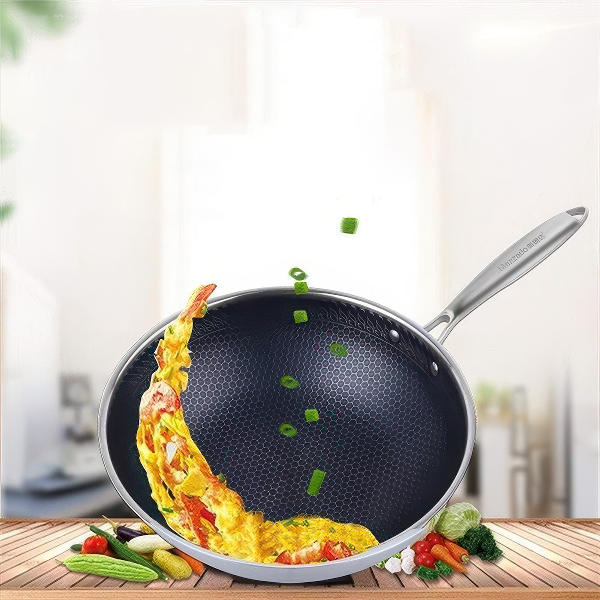 ✅ Повеќенаменска употреба – Совршено е за пржење, динстање, печење и подготовка на различни азиски јадења, додека рамното дно обезбедува рамномерна дистрибуција на топлина на сите видови шпорети.