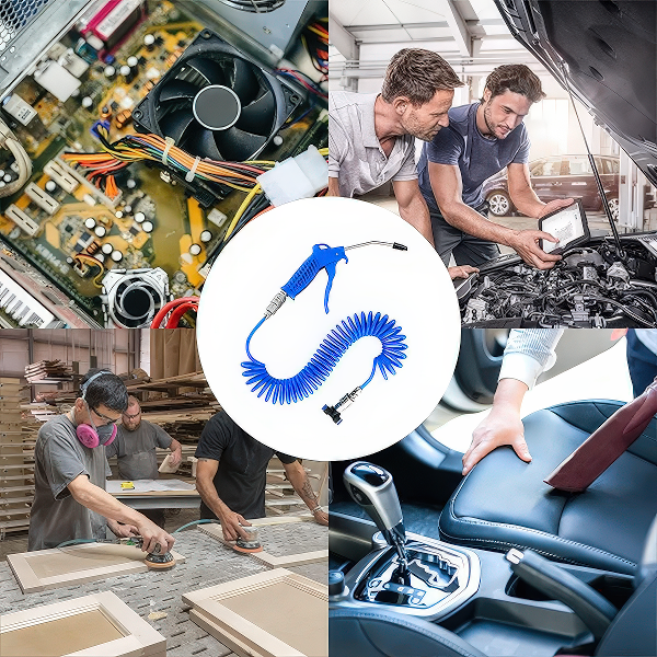 Овој воздушен пиштол е исклучително разновиден и може да се користи на широк спектар на површини, вклучувајќи метал, пластика, гума, ткаенина, стакло и дрво. Совршен е за чистење на автомобили, мебел, прозорци, теписи, па дури и индустриска опрема.