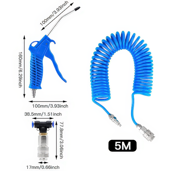 Овој пневматски пиштол обезбедува моќен проток на воздух кој овозможува брзо отстранување на прашината, отпадот и остатоците од деловите и површините. Идеална алатка за ефикасно чистење и дување воздух во различни работни средини.