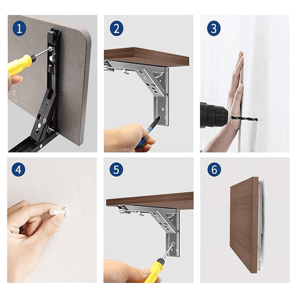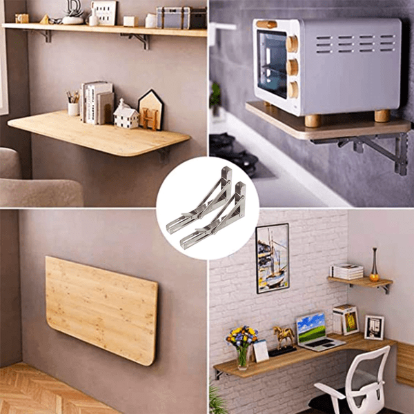 ✅ Заштеда на простор - Овие држачи на склопување ти овозможуваат лесно да ја преклопиш полицата кога не се користи, ослободувајќи простор во твојот дом.