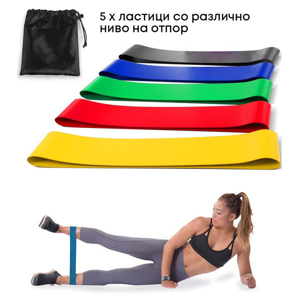 ✅ 5 Во 1 сет - Комплетот доаѓа со 5 различни ластици, кои се класифицирани по боја - тежина. Тие ти овозможуваат изведување различни вежби со различни тежини, што обезбедува динамична и ефективна обука.