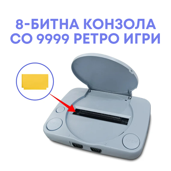 Новата супер 8-битна конзола за игри е незаборавно патување во земјата на игрите. Одлична забава за деца и родители кои сакаат авантура и за сите кои сакаат да се присетат на часовите поминати во играње класични 8-битни игри како СУПЕР МАРИО БРОС, ПАК ХАНТ, КОНТРА...