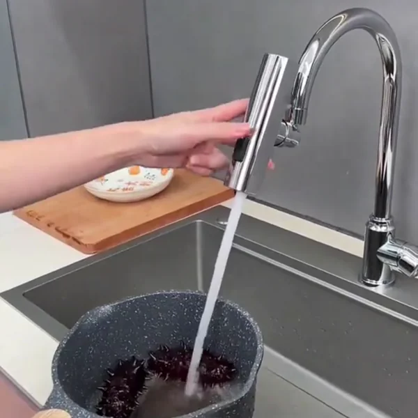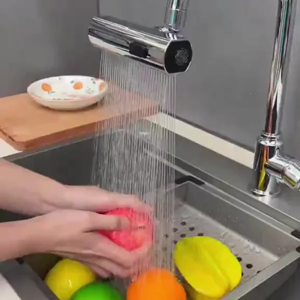 "Ова е најдобриот додаток што сум го купила за во кујна! Ротацијата е многу мазна и сега можам лесно да го измијам целиот мијалник. Режимот на водопад е совршен за миење јагоди и марула без да ги оштети. Изгледа одлично на мојата чешма и навистина не прска!" - Елена С.