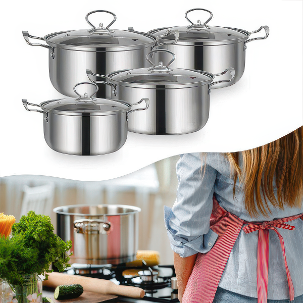 Овој сет од 4 тенџериња за готвење со стаклен капак е совршен избор за секоја кујна, нудејќи ти се комплетен асортиман на тенџериња со различни димензии (16, 18, 20, 22 cm), идеални за подготовка на различни оброци.