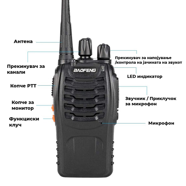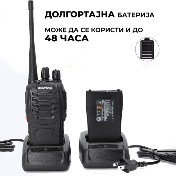 ✅ Брза и сигурна комуникација - Рачниот радио воки токи овозможува брза и сигурна комуникација на растојанија каде што мобилните телефони можеби немаат сигнал. Неопходно е за итни ситуации, пешачење, кампување и други активности на отворено.