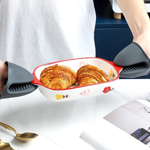 ✅ Отпорност на високи температури - Силиконскиот држач за рерна обезбедува исклучителна отпорност на високи температури, обезбедувајќи безбедно ракување со жешките тави и печки.