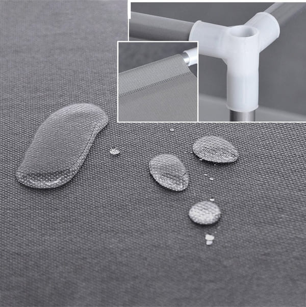 Предниот дел на плакарот се затвора, што ќе ја заштити облеката од прашина, домашни миленици и мали деца. Ткаенината е водоотпорна и не пропушта влага, а ќе обезбеди оптимален проток на воздух!