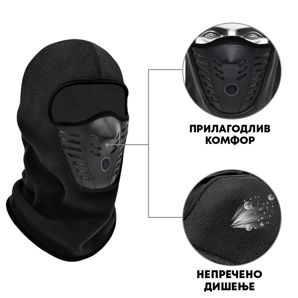Зимската маска за скијање која ја покрива целата глава, лице и врат претставува совршена комбинација на топлина, удобност и функционалност за време на секој зимски спортски предизвик. Изработена со внимание на деталите, оваа маска обезбедува целосна заштита од суровата зимска клима, овозможувајќи ти да уживаш во скијањето без оглед на временските услови.